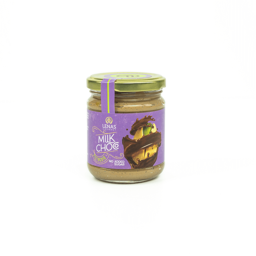 ΣΥΣΤΑΤΙΚΑ: Το άλειμμα σοκολάτας γάλακτος με φιστίκι, Lenas Milk Choco Pistachio παρασκευάζεται από άριστης ποιότητας ελληνικά κελυφωτά φυστίκια και εξαιρετική σοκολάτα γάλακτος. Δεν περιέχει ζάχαρη, ενώ είναι κατάλληλο και για χορτοφαγική διατροφή.