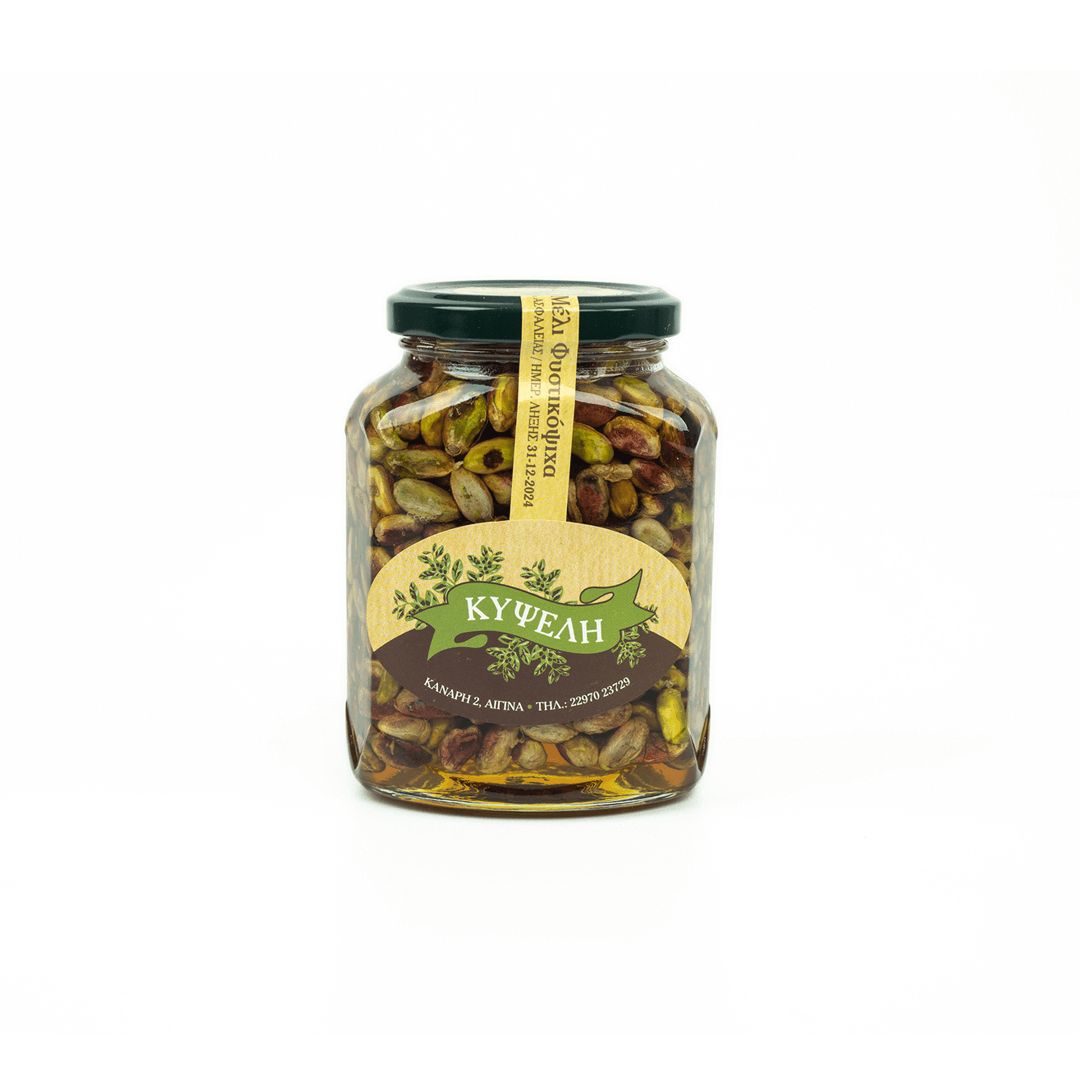 ΣΥΣΤΑΤΙΚΑ: Το μέλι με φυστικόψιχα Κυψέλη είναι δικής μας παραγωγής και παρασκευάζεται μόνο από άριστης ποιότητας ελληνικά κελυφωτά φυστίκια και εξαιρετικό μέλι που είναι κι αυτό 100% ελληνικής προέλευσης. Το προϊόν είναι κατάλληλο και για χορτοφαγική διατροφή.