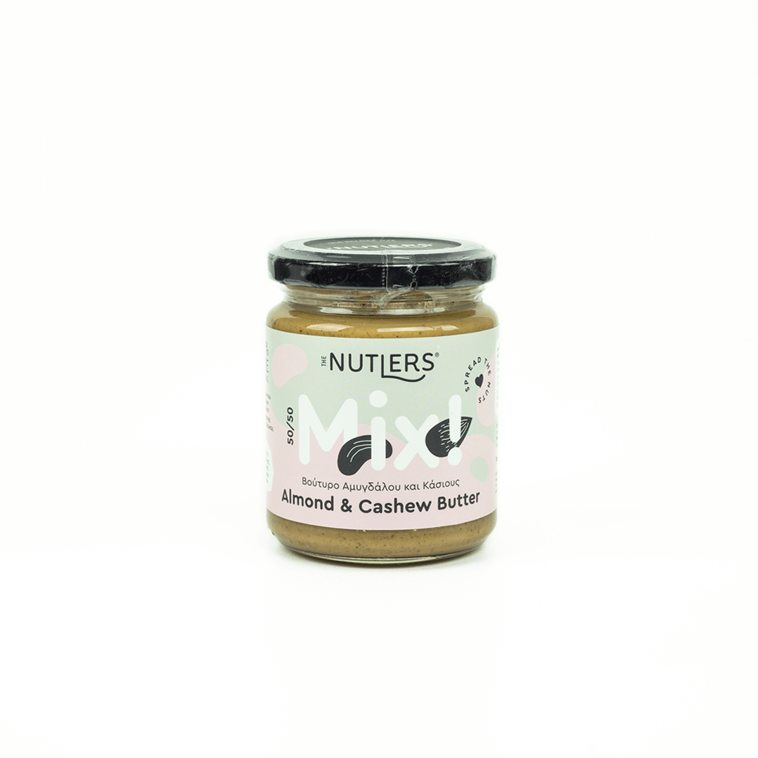 ΣΥΣΤΑΤΙΚΑ: Το βούτυρο αμυγδάλου και κάσιους Nutlers Mix Almond & Cashew Butter παρασκευάζεται από άριστης ποιότητας ελληνικά αμύγδαλα και κάσιους προέλευσης εντός και εκτός ΕΕ. Δεν περιέχει φοινικέλαιο, ζάχαρη, αλάτι και συντηρητικά. Χωρίς γλουτένη. Kατάλληλο για χορτοφαγική και vegan διατροφή.